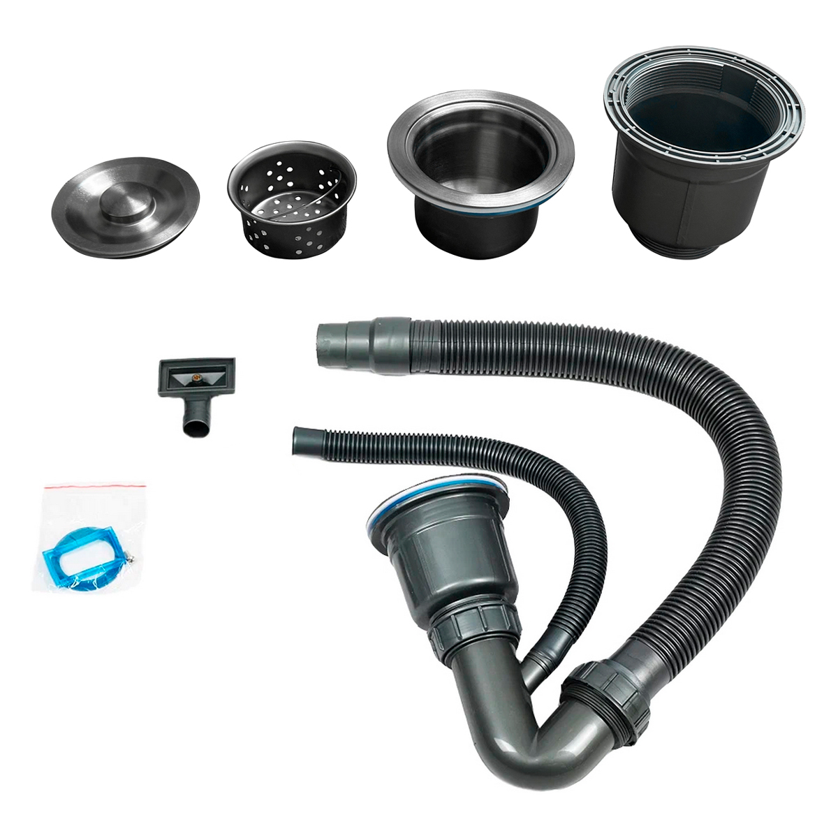 Сливное отверстие дополнено корзиночным съемным фильтром с матрешечной конструкцией. Слив, перелив, сифон и гофра из первичного полимера в комплекте, упакованы в мешок из нетканого материала.Код товара:Добавить в избранное