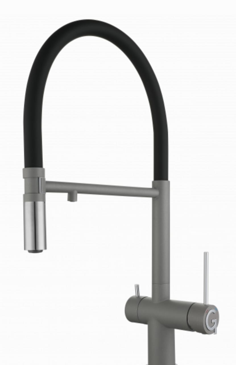 RIVELATO Смеситель для кухни Adria U-обр. гиб.излив с краном питьевой воды D-35мм grigio/cromo (БЛ)