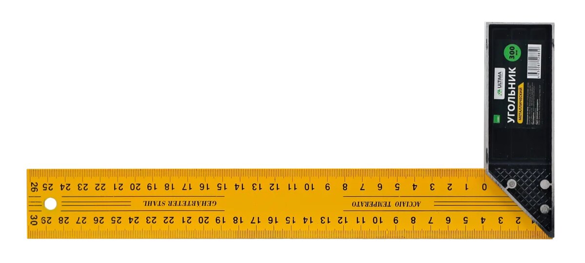 Полотно угольника имеет двухстороннюю разметку. Удобный измерительный инструмент, имеющий длину полотна 30 см.